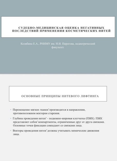 «Судебно-медицинская оценка негативных последствий применения косметических нитей» (Колябина Е.А., Российский Национальный Исследовательский Медицинский Университет им. Пирогова);