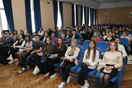 06 сентября 2023 года в актовом зале Санкт-Петербургского филиала Университета прокуратуры Российской Федерации состоялась встреча студентов 1 курса юридического факультета Института с кураторами − преподавателями кафедры государственно-правовых дисциплин. Перед студентами выступил заведующий кафедрой В.В. Лавров, который познакомил первокурсников с преподавателями кафедры, рассказал об учебных дисциплинах, которые закреплены за кафедрой, и пожелал студентам успехов в учебе, а также активного участия в культурной жизни Института. На встрече также присутствовали студенты 2-4 курса юридического факультета, которые являются адаптерами первокурсников.