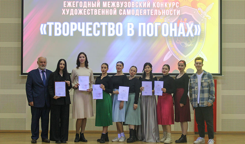 27 октября 2023 года студенты Санкт-Петербургского филиала Университета прокуратуры Российской Федерации приняли участие в Ежегодном межвузовском конкурсе художественной самодеятельности «Творчество в погонах». Конкурс был организован Санкт-Петербургской академией Следственного комитета Российской Федерации. 16 октября прошел отборочный этап, по его итогам были определены участники, вышедшие в финал. 27 октября состоялся Гала-концерт, после которого были объявлены победители в каждой из представленных номинаций. В номинации «Эстрадный вокал» весь пьедестал был занят студентами нашего Института: Сивцева Анжелика — лауреат I степени (соло); Иванова Виктория — лауреат II степени (соло); Анпилогова Елизавета, Красивенкова Диана и Бахилин Артем — лауреаты III степени (коллектив). В номинации «Хореографическое искусство»: лауреатами II степени с хореографической постановкой «Соловушка» и лауреатами III степени с хореографической постановкой «Russian girls» стали участники хореографического объединения «БЕНЕФИТ» (Белова Виктория, Романова Полина, Клестова Валерия, Кольцова Александра, Чевардова Варвара и Галашев Степан). За подготовку творческих номеров отдельно благодарственные письма были вручены: председателю сектора по координации и Клубной деятельности — Анпилоговой Елизавете; руководителю Музыкальной студии по секции «Хореография» — Беловой Виктории. Поздравляем победителей, благодарим участников и организаторов, желаем новых творческих достижений! |