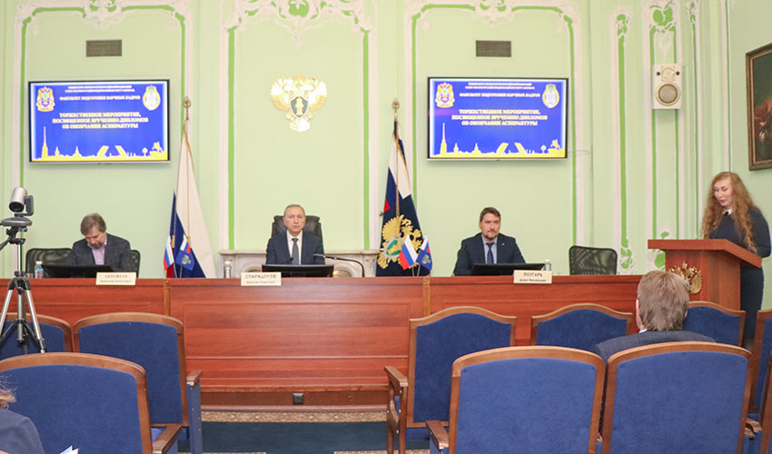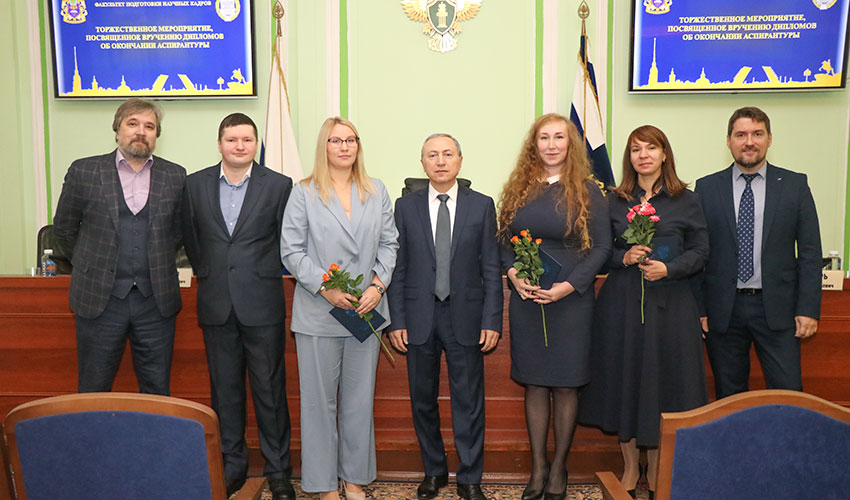 30 октября 2023 г. в Санкт-Петербургском юридическом институте (филиале) Университета прокуратуры Российской Федерации состоялось торжественное вручение дипломов об окончании аспирантуры выпускникам очной и заочной форм обучения факультета подготовки научных кадров. В соответствии с приказом ректора Университета от 16.10.2023 № 641 аспирантам Айвазян А.Г., Зиминой С.В., Зорину В.С., Корягину Ю.Г., Периной А.С. и Токаревой А.А. успешно прошедшим государственную итоговую аттестацию, присвоена квалификация «Исследователь. Преподаватель-исследователь» по направлению подготовки 40.06.01 Юриспруденция. В торжественном мероприятии приняли участие аспиранты очной и заочной форм обучения, руководство и профессорско-преподавательский состав Института. Директор Института, государственный советник юстиции 2 класса, д.ю.н. Спиридонов А.П. поздравил выпускников, пожелав им личного и профессионального роста, а также успешной защиты диссертации на соискание ученой степени кандидата наук и вручил дипломы об окончании аспирантуры. С напутственными словами выпускникам выступили заведующие кафедр Института, пожелавшие не останавливаться на достигнутом, продолжать развиваться в своей профессии и расширять свои горизонты. Перина Анжела Сергеевна от имени выпускников выразила слова благодарности профессорско-преподавательскому составу и руководству Института. |