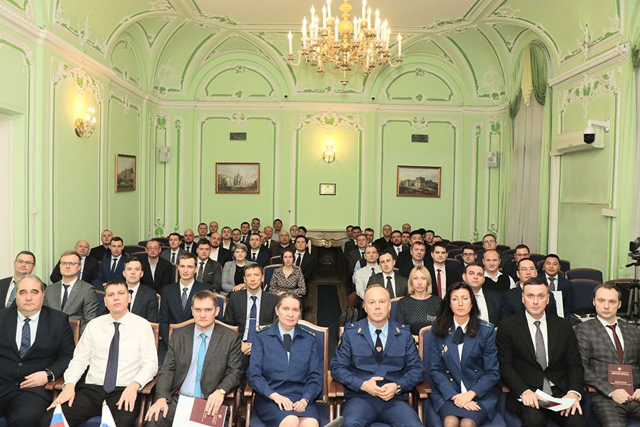 31 октября 2023 года в Санкт-Петербургском юридическом институте Университета прокуратуры Российской Федерации завершилось обучение слушателей по программе профессиональной переподготовки прокурорских работников, состоящих в резерве кадров для выдвижения на должности прокуроров городов, районов и приравненных к ним прокуроров специализированных прокуратур. Темы программы профессиональной переподготовки изучались в ходе лекций и семинарских занятий, а также выездных занятий, круглых столов, семинаров по обмену опытом и деловых игр. В результате обучения обучающиеся систематизировали имеющиеся знания по вопросам деятельности и информационного обеспечения в органах прокуратуры, участия прокурора в рассмотрении дел судами, прокурорского надзора, международного сотрудничества в сфере прокурорской деятельности. В ходе воспитательной работы слушатели посетили музеи истории и культуры, участвовали в спортивных мероприятиях. Поздравляем слушателей с итоговой аттестацией и желаем успехов в дальнейшей профессиональной деятельности!