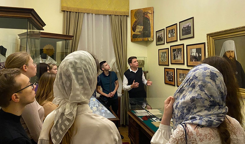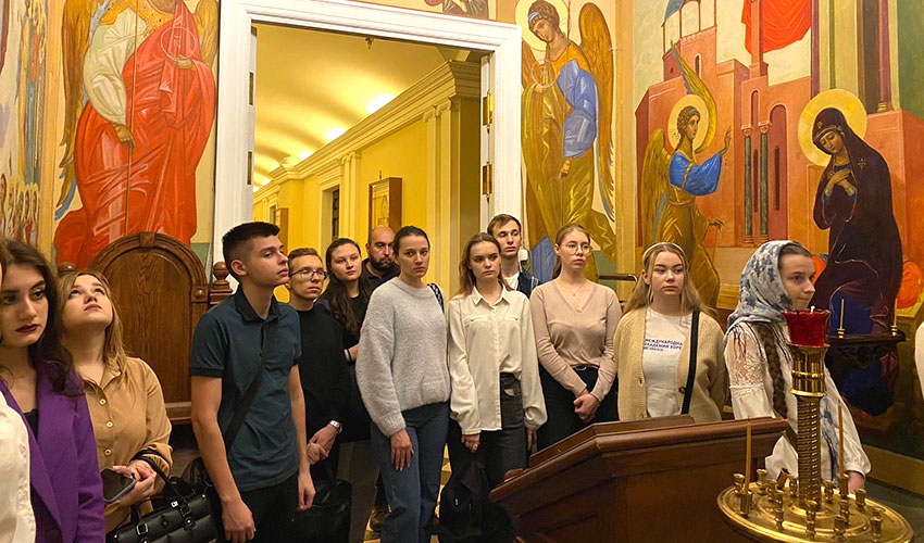 08 ноября 2023 года студенты Санкт-Петербургского филиала Университета прокуратуры Российской Федерации в рамках межвузовского взаимодействия посетили Санкт-Петербургскую Духовную Академию. Мероприятие было организовано Патриотическим клубом в целях повышения уровня духовно-нравственного воспитания. Студенты с экскурсоводом посетили музейные экспозиции, ознакомились с историей одной из старейших духовных школ России, а также побывали в домовом храме, где проходят богослужебную практику все обучающиеся Академии. Ребятам продемонстрировали выставку, посвященную великому князю Александру Невскому, и собрание дореволюционных книжных изданий, находящихся в сокровищницах библиотеки. После экскурсии состоялось встреча и знакомство со студентами Академии, где в неформальной обстановке они смогли задать друг другу вопросы о студенческой жизни, выбранном пути и служении Родине. За совместным чаепитием состоялось обсуждение нравственных вопросов. Студенты Института рассказали о юристах-классиках, которые внесли особый вклад в развитие права. Затем ребята обсудили перспективы развития современного общества на ближайшие годы, отметили положительную тенденцию закрепления в законодательстве основ государственной политики по сохранению и укреплению традиционных российских духовно-нравственных ценностей. Отметим, что это не первая встреча со студентами Санкт-Петербургской Духовной Академией, поэтому молодые люди наметили дальнейшие планы по развитию отношений между учебными заведениями. Благодарим студентов Духовной Академии за приглашение и дружеское общение! |