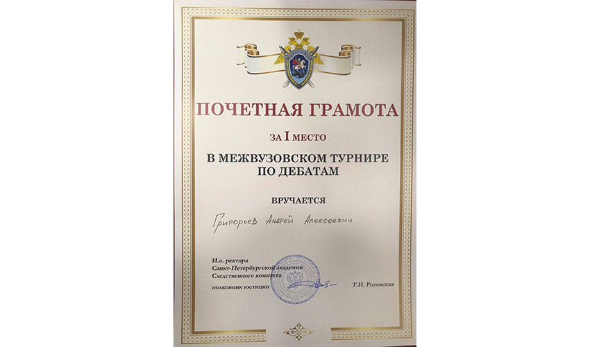25 ноября 2023 года студенты юридического факультета Санкт-Петербургского филиала Университета прокуратуры Российской Федерации приняли участие в Межвузовском турнире по дебатам на площадке Санкт-Петербургской академии Следственного комитета.