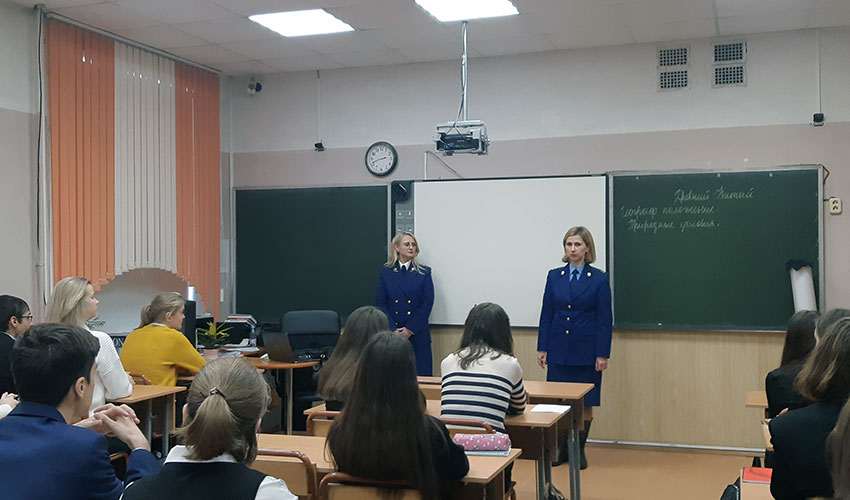 30 ноября 2023 года во исполнение Плана просветительских и воспитательных мероприятий в области противодействия коррупции на 2023 год под руководством доцента кафедры уголовного процесса и криминалистики Кулика Н.В. слушатели факультета профессиональной переподготовки и повышения квалификации Института Иванкив Т.Ф., старший помощник прокурора г.Сургута Ханты-Мансийского автономного округа, и Морозова М.А., помощник Тосненского городского прокурора Ленинградской области, провели открытый урок в 11 классе гимназии № 526 Московского района Санкт-Петербурга на тему «Старт во взрослую жизнь: коррупция и как ей противостоять». В рамках указанного мероприятия, направленного на развитие у молодежи нетерпимости к коррупционным проявлениям, выступающими были обозначены основные формы коррупционных деяний, существующие в современном российском обществе, и система мер, направленная на их профилактику и противодействие. К тематике занятия учащиеся проявили должное внимание, активно участвовали в обсуждении, задавали вопросы. Выражаем благодарность руководству гимназии № 526 Московского района Санкт-Петербурга за сотрудничество! |