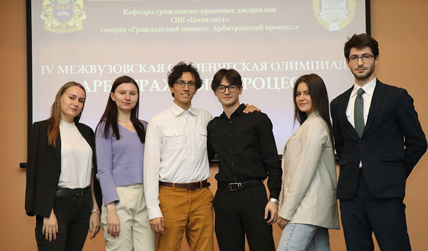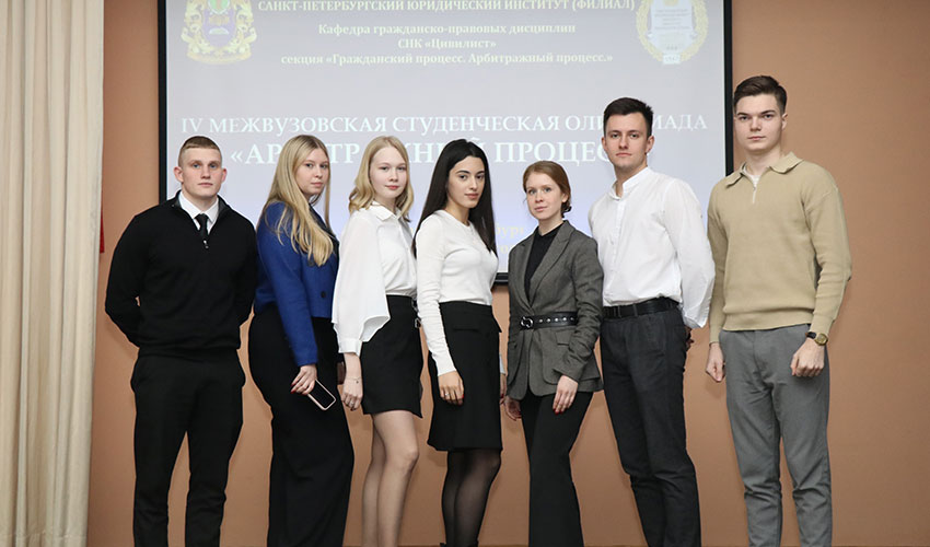 2 декабря 2023 г. в Санкт-Петербургском филиале Университета Прокуратуры Российской Федерации состоялась IV Межвузовская студенческая Олимпиада «Арбитражный процесс». В Олимпиаде приняли участие студенты Северо-Западного филиала Российского государственного университета правосудия, Санкт-Петербургского института (филиала) Всероссийского государственного университета юстиции (РПА Минюста России), Санкт-Петербургского филиала Российской таможенной академии, Сибирского юридического университета (г. Омск), Санкт-Петербургского государственного университета аэрокосмического приборостроения, Санкт-Петербургского филиала Университета прокуратуры Российской Федерации. В состав жюри вошли: председатель жюри - заведующий кафедрой гражданско-правовых дисциплин Института, доктор юридических наук, профессор, старший советник юстиции Васильчикова Н.А., члены жюри: доцент кафедры гражданско-правовых дисциплин Института, кандидат юридических наук, советник юстиции Порохов М.Ю.; доцент кафедры гражданско-правовых дисциплин Института, кандидат юридических наук, советник юстиции Пиддубривная А.Ю.; старший преподаватель кафедры гражданско-правовых дисциплин Института, младший советник юстиции Боброва Ю.М.; доцент кафедры гражданского процесса РПА Минюста России, кандидат юридических наук Кузбагарова В.А.; доцент кафедры гражданского процессуального права Северо-Западного филиала Российского государственного университета правосудия, кандидат юридических наук Катукова С.Ю. Олимпиада состояла из трех этапов: Первый этап – приветствие, в котором командам нужно было представить команды в формате инсценировки, КВН либо видео-ролика. Второй этап – тестирование, которое представляло собой перечень вопросов с вариантами ответов на них. Третий этап – задание: «Анализ процессуальных документов», в котором командам необходимо было проанализировать процессуальные документы и найти правовые ошибки, неточности либо нарушения в них, а также указать на правильное процессуальное решение по предложенным материалам. По итогам Олимпиады: I место заняла команда «Без названия» Санкт-Петербургского филиала Университета прокуратуры Российской Федерации в составе: Жестковой Екатерины, Моисеевой Полины, Никитиной Алисы, Федотовой Анастасии, Халявиной Софии, Ясеновской Екатерины; II место − команда «Notabene» Северо-Западного филиала Российского государственного университета правосудия в составе: Грибкова Артема, Закиматова Михаила, Кузнецовой Валерии, Курсинова Даниила, Фазыловой Анастасии и Чубаровой Марины. III место − команда «ОПГ «Железные рукава» филиала Университета прокуратуры Российской Федерации в составе: Ботенко Александра, Габибовой Эльвиры, Зеленкова Назара, Казановой Полины, Колошиной Екатерины, Цапенко Василия. Оргкомитет благодарит за помощь в организации и проведении Олимпиады Сушкину Валерию, Садкову Полину, Засеева Заура, Красовскую Елену, Попову Екатерину, Богданова Артема, Ким Артура, Колобова Дмитрия, Калиничева Елисея, Слепневу Софию и Лукашенко Полину. |