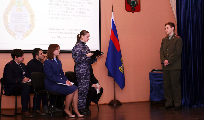 25 ноября 2023 г. в Санкт-Петербургском филиале Университета прокуратуры Российской Федерации прошла II Внутривузовская олимпиада по дисциплине «Правоохранительные органы». В олимпиаде приняли участие 7 команд из числа студентов 1 курса юридического факультета Института. Олимпиада состояла из 5 этапов: Приветствие; Правоохранительная викторина; «Угадай кино!»; Конкурс капитанов; Тест. Участники продемонстрировали высокий уровень знаний по дисциплине «Правоохранительные органы», творческий подход к конкурсам, В упорной борьбе места распределись следующим образом: I место – команда «Мы из органов» в составе: Николая Дакова, Дианы Абрамовой, Михаила Вересова, Софьи Коноваловой, Вячеслава Нестеренко, Эрика Хабалова, Никиты Шкрябина; II место – команда «Конфликт интересов» в составе: Василия Балтачева, Виктории Карташевой, Марии Абидовой, Арины Лабовской, Владислава Булаева, Эмиля Хубаева; III место – команда «Следствие вели» в составе: Егора Авдеева, Максима Крючкова, Леонида Новикова, Михаила Рымара, Артема Бахилина, Кирилла Андреева, Павела Галицкого, и команда «Следствие ведут колобки» в составе: Максима Рыжкина, Виктории Тен, Виктории Элбек, Ильи Шеставина, Виктории Антонюк, Артема Приходько, Елизаветы Ступень. В номинации «Лучший капитан» победителями стали: I место – Николай Даков; II место – Владислав Булаев; III место – Виталия Никитина и Максим Рыжкин. Победители и призеры награждены дипломами и памятными кубками. Благодарим студентов и преподавателей за активное участие в проведении и подготовке Олимпиады! |