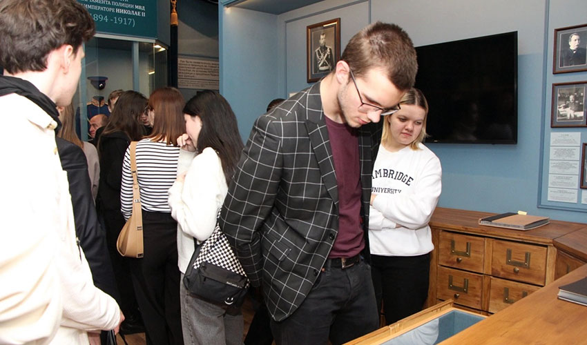 13 и 15 декабря 2023 года для студентов 1 курса юридического факультета Санкт-Петербургского филиала Университета прокуратуры Российской Федерации организованы экскурсии в Музей истории политической полиции и органов государственной безопасности «Гороховая, 2». Студенты познакомились с историей становления и функционирования органов политической полиции и органов государственной безопасности в период 19−20 века. Отдельный интерес у экскурсантов вызвали экспонаты музея: форменное обмундирование сотрудников спецслужб, фотографии, документация, оружие и другое. Благодарим за организацию экскурсии! |