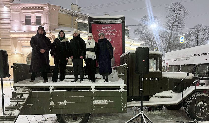 18 января 2024 г. студенты и аспиранты Санкт-Петербургского филиала Университета прокуратуры Российской Федерации приняли участие в Молодежной патриотической акции, посвящённой прорыву блокады Ленинграда - поэтическом марафоне «Блокадная муза». В рамках акции, организованной Центром патриотического воспитания молодежи «Дзержинец» на импровизированной сцене, оборудованной на автомобиле ГАЗ-АА («полуторка»), они читали стихи поэтов блокадного Ленинграда и современных авторов. |