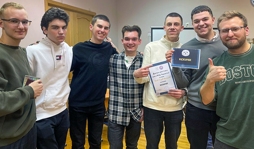 25 января 2024 г. студенты юридического факультета Санкт-Петербургского филиала Университета прокуратуры Российской Федерации приняли участие в турнире «Что? Где? Когда?», проведенного Молодежным советом Кировского района на базе подростково-молодежного клуба «Ленинец». Участникам предстояло пройти несколько раундов, игра была рассчитана на развитие нестандартного мышления. В квизе приняли участие 2 команды студентов первого курса Института: команда в составе Сергея Алексеева, Павла Коваленко, Кирилла Андреева, Максима Голубева, Максима Крючкова, Артема Приходько, и команда в составе Кристины Беловой, Алексея Михайлова, Вадима Депутатова, Ильи Шеставина и Елизаветы Сухорословой. По итогам игры обе команды заняли почетное 3 место! Поздравляем ребят с призовым местом и желаем дальнейших творческих успехов! |