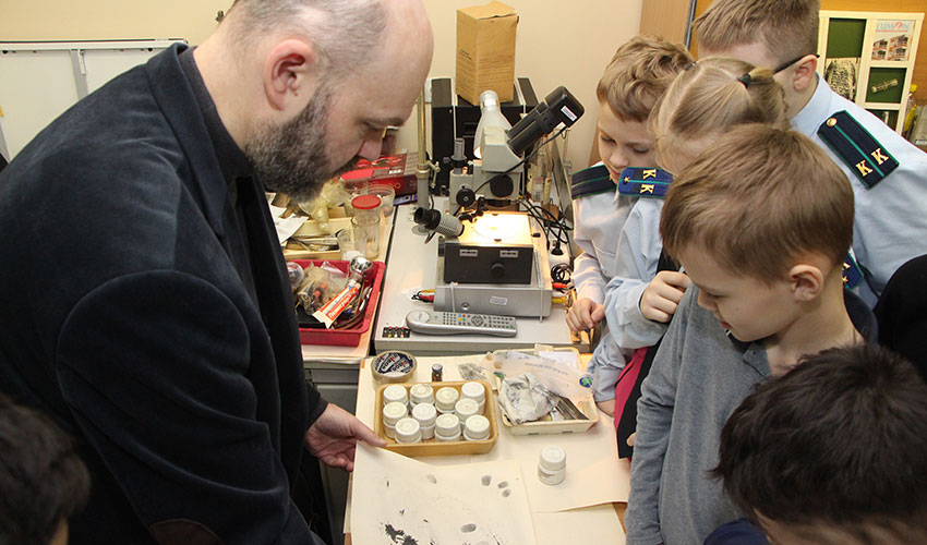 30 января 2024 г. во исполнение Комплексного плана правового просвещения населения в сфере защиты прав несовершеннолетних и Плана просветительских и воспитательных мероприятий в области противодействия коррупции для учащихся ГБОУ СОШ № 444 заведующим криминалистической лабораторией Холоповым А.В. проведен открытый урок на тему «Использование криминалистической техники при расследовании преступлений». Ребята ознакомились с поисковыми технико-криминалистическими средствами, им были продемонстрированы универсальные криминалистические комплекты (криминалистические чемоданы), а также работа программы «Фоторобот». В ходе урока были также обсуждены вопросы противодействия коррупции.
