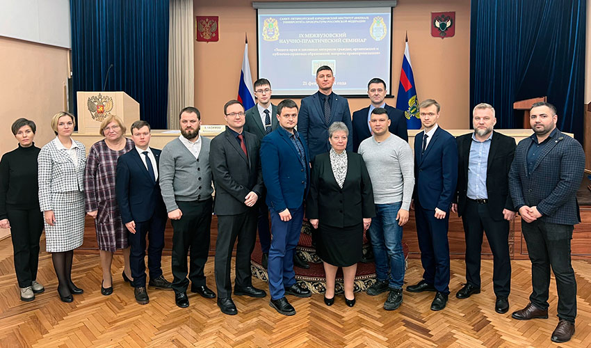 21 февраля 2024 года в Санкт-Петербургском филиале Университета прокуратуры Российской Федерации прошел IX межвузовский научно-практический семинар «Защита прав и законных интересов граждан, организаций и публично-правовых образований: вопросы правоприменения». Также на семинаре выступили слушатели факультета профессиональной переподготовки и повышения квалификации Института: заместитель прокурора Центрального района г. Волгограда Левин В.В.; заместитель прокурора Усть-Вымского района Республики Коми Мештбаев А.К.; старший прокурор отдела по надзору за исполнением законодательства о противодействии коррупции прокуратуры Калининградской области Куликов Н.А.; заместитель прокурора г. Петрозаводска Республика Карелия Айвазян А.А.; заместитель прокурора Пинежского района Архангельской области Климов Е.В. и старший прокурор отдела по надзору за исполнением законов о несовершеннолетних и молодёжи прокуратуры Вологодской области Коновалов Д.В. В рамках научной дискуссии были обсуждены проблемы злоупотребления правом, недействительности сделок, исковой давности, защиты трудовых и жилищных прав граждан, а также защиты прокурором прав и законных интересов несовершеннолетних и многие другие актуальные вопросы. Участники межвузовского научно-практического семинара обменялись мнениями по вопросам правоприменительной практики и необходимости внесения изменений в действующее законодательство. Благодарим всех за участие и надеемся на дальнейшее сотрудничество!
