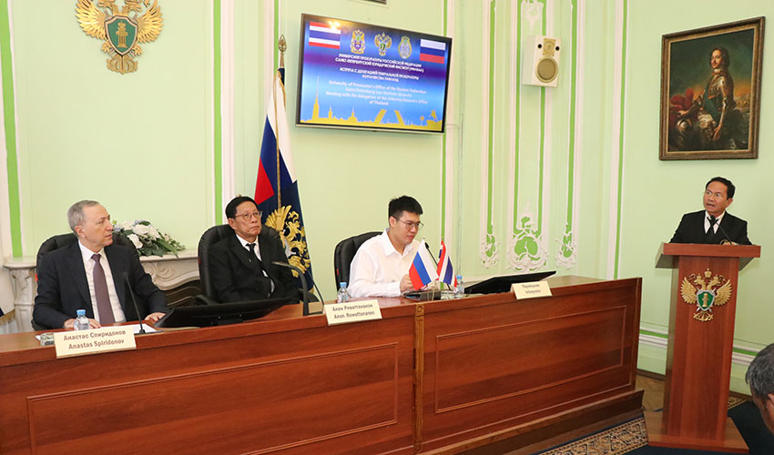 С приветственным словом выступил директор Института Спиридонов А.П., который подчеркнул важность укрепления сотрудничества с Генеральной прокуратурой Королевства Таиланд, в том числе, в целях проведения совместных исследований и обмена опытом в вопросах прокурорской деятельности.