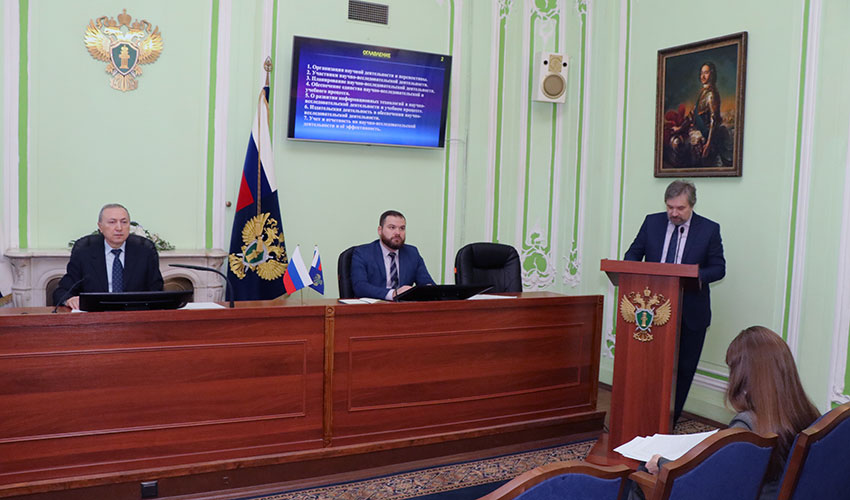 27 марта 2024 года в Санкт-Петербургском филиале Университета прокуратуры Российской Федерации под председательством директора государственного советника юстиции 2 класса, д.ю.н. Спиридонова А.П. состоялось заседание Учёного совета. В рамках заседания заслушаны информации о подготовке, издании и перспективах развития научно-практического журнала «КриминалистЪ», об организации и совершенствовании научной деятельности в Институте, научное сообщение на тему «Актуальные вопросы осуществления международного сотрудничества в сфере уголовного судопроизводства»