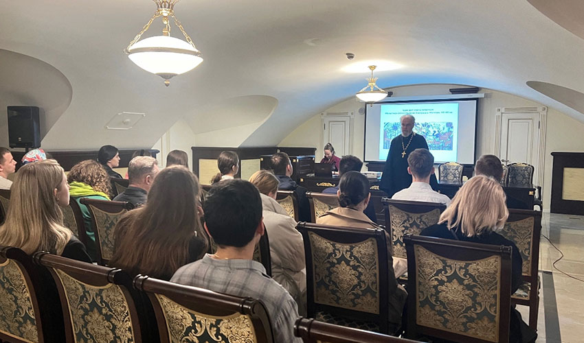 09 апреля 2024 года студенты Патриотического клуба Санкт-Петербургского филиала Университета прокуратуры Российской Федерации совместно с доцентом кафедры государственно-правовых дисциплин Фирсовым В.В. посетили с экскурсией Казанский кафедральный собор. Их встретил руководитель катехизаторских курсов при соборе иерей Георгий Кобрин. Студентам рассказали об истории создания собора, о связи династии рода Романовых с крупнейшим собором России, церковных реликвиях, находящихся в храме (голгофа в соборе была сооружена в память о спасении семьи императора Александра III при крушении поезда в Борках по поручению самого царя). Затем в конференц-зале Казанского кафедрального собора состоялась беседа с учащимися, посвященная теме назначения и совершенствования человека как важном условии существования мира, разрушения базовых норм морали на основе психологического манипулирования, созидания и возрождения духовного наследия России и мировых религий, понятия добра и зла. |