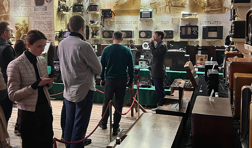 Слушатели в ходе обзорной экскурсии ознакомились с подлинными историческими автомобилями и военной техникой времен Второй мировой войны; реконструкцией полевого госпиталя; радиовещания блокадного Ленинграда, средства связи РККА и средства связи Вермахта; выставкой стрелкового оружия, зенитных и противотанковых оружий, а также боевых знамен частей Красной Армии, военно-морского флота и партизанских отрядов; с экспозицией, посвященной юным героям Великой Отечественной войны; диорамой «Дорога жизни»; выставкой плакатов «Боевой карандаш».