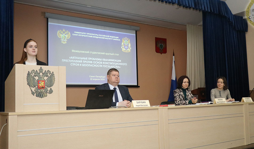 22 апреля 2024 г. в Санкт-Петербургском филиале Университета прокуратуры Российской Федерации в рамках «Недели науки» состоялся Межвузовский студенческий круглый стол «Актуальные проблемы квалификации преступлений против основ конституционного строя и безопасности государства». В мероприятии приняли участие представители Санкт-Петербургского института (филиала) Всероссийского государственного университета юстиции (РПА Минюста России), Северо-Западного института управления — филиала Российской академии народного хозяйства и государственной службы при Президенте Российской Федерации, Северо-Западного филиала Российского государственного университета правосудия, Санкт-Петербургского филиала Университета Прокуратуры Российской Федерации. Круглый стол открыла профессор кафедры уголовного права, криминологии и уголовно-исполнительного права Института, доктор юридических наук, профессор Готчина Лариса Владимировна. Спикером Круглого стола выступил доцент кафедры уголовного права, криминологии и уголовно-исполнительного права, кандидат юридических наук, доцент Зарубин Андрей Викторович. Активное участие в работе Круглого стола приняла аспирант кафедры Русинова Карина Олеговна. Участники Круглого стола обратили внимание на проблемы уголовной ответственности за государственную измену и ее отграничения от шпионажа, добровольной сдачи в плен, разглашения государственной тайны, вопросы квалификации преступлений экстремистской направленности, в том числе демонстрации символики экстремистских организаций и осуществления деятельности иностранной или международной неправительственной организации, в отношении которой принято решение о признании нежелательной на территории Российской Федерации ее деятельности, уголовно-правовые и криминологические пути совершенствования противодействия терроризму. Вопросы, затронутые во время обсуждения на Межвузовском студенческом круглом столе, вызвали продолжительную дискуссию, которая помогла всесторонне изучить многие проблемы против основ конституционного строя и безопасности государства. Благодарим всех докладчиков и участников Межвузовского студенческого круглого стола за активное участие и проявленный интерес к научному мероприятию!