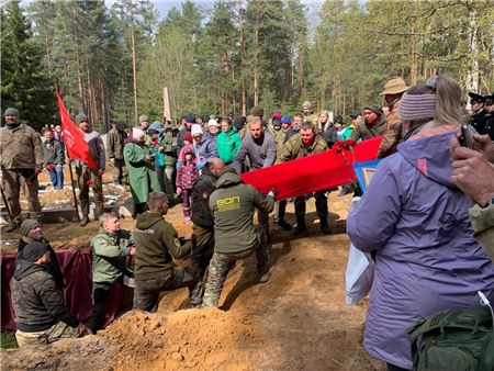 На наших глазах произошло одновременно великое и трогательное событие. Семья из республики Якутия в составе 8 человек приехала на торжественное захоронение своего родственника, долгое время считавшегося без вести пропавшим в боях под Ленинградом.