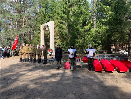 Представители Патриотического клуба возложили цветы к братской могиле героев Великой Отечественной войны. Руководитель поискового объединения «Северо-Запад» Дюринский И.А. командир поискового отряда «Лодва» Воронов Д.В. и член этого отряда - представитель Ассоциации выпускников нашего Института рассказали студентам о важности поисковой работы.