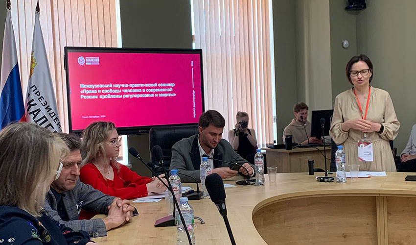 С приветственным словом на семинаре выступили советник Уполномоченного по правам человека в Санкт-Петербурге К.Е. Шарыгин и заведующий кафедрой конституционного и административного права юридического факультета РАНХиГС Санкт-Петербург А.К. Соловьева.