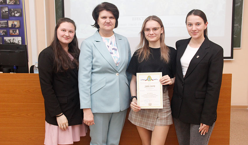 18 мая 2024 г. в Санкт-Петербургском филиале Университета прокуратуры Российской Федерации проведена студенческая викторина «Подвиг твой бессмертен, солдат», посвященная Дню Победы советского народа в Великой Отечественной войне 1941-1945 гг. В викторине приняли участие 6 команд студентов 1, 2 и 4 курсов юридического факультета Института. Мероприятие прошло в форме викторины «Своя игра», вопросы которой были разделены на тематические группы: «Сражения и битвы Великой Отечественной войны», «Военная техника», «Герои и их подвиги», «Фильмы о войне», «Мемориалы и памятники», «Улицы и площади Санкт-Петербурга и Ленобласти», посвященные героям и событиям Великой Отечественной войны. В жюри викторины вошли преподаватели кафедры теории и истории государства и права: Е.Е. Амплеева, Н.М. Иванова, А.В. Ерёмин. I место: команда «Потомки», в составе Поповой Екатерины, Сомко Виктории, Слепнёвой Софии (4 курс); II место: команда «401-я Ударная» в составе Афончикова Сергея, Курчук Валерии, Сарапкина Владимира (4 курс); III место: команда «Маршалы Победы» в составе Колобова Дмитрия, Тимошенко Всеволода и Красивенковой Дианы (4 курс).