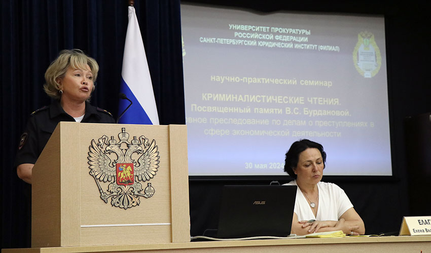 30 мая 2024 г. Санкт-Петербургским филиалом Университета прокуратуры Российской Федерации проведен научно-практический семинар «Криминалистические чтения (посвященные памяти В.С. Бурдановой). Уголовное преследование по делам о преступлениях в сфере экономической деятельности». Мероприятие организовано и проведено кафедрой уголовного процесса и криминалистики Института. В работе семинара приняли участие слушатели факультета профессиональной переподготовки и повышения квалификации, обучающиеся по программе повышения квалификации старших помощников, помощников прокуроров городов, районов и приравненных к ним прокуроров специализированных прокуратур, осуществляющих надзор за исполнением законов органами, осуществляющими дознание, предварительное следствие и оперативно-розыскную деятельность; представители Северо-Западного регионального центра судебной экспертизы Министерства юстиции Российской Федерации, Экспертно-криминалистического центра Главного управления Министерства внутренних дел России по г. Санкт-Петербургу и Ленинградской области, Главного следственного управления Следственного комитета Российской Федерации, Следственного управления Следственного комитета Российской Федерации по Новгородской области, Федеральной налоговой службы, Ленинградской областной адвокатской палаты, представители Санкт-Петербургской академии Следственного комитета России, Саратовской государственной юридической академии, Тульского государственного университета, Северо-Западного филиала Российского государственного университета правосудия, Санкт-Петербургского института (филиала) Всероссийского государственного университета юстиции, Государственного университета просвещения, Санкт-Петербургского государственного университета, Юридического института Национального Исследовательского Томского государственного университета, Санкт-Петербургского ордена Жукова института войск национальной гвардии Российской Федерации, Санкт-Петербургского университета МВД России, Университета ФСИН и других органов и организаций, профессорско-преподавательский состав и аспиранты Института. Участники научно-практического семинара выступили с докладами, посвященными традициям и новациям противодействия преступлениям экономической направленности; особенностям назначения и производства судебных экономических экспертиз; криминалистическому мышлению следователя в трудах профессора В.С. Бурдановой; криптовалюте, как объекту легализации в механизме совершения преступления; проблемам выявления и расследования криминальных банкротств; особенностям уголовного преследования за воспрепятствование законной предпринимательской деятельности; особенностям производства отдельных следственных действий (в том числе с использованием систем видео-конференц-связи) при расследовании хищений бюджетных средств в ходе строительства государственных объектов; особенностям определения суммы ущерба по уголовным делам о налоговых преступлениях; новым способам мошенничества; проблемам, связанным с применением мер пресечения по делам экономической направленности; особенностям прекращения уголовного преследования по уголовным делам о преступлениях в сфере экономической деятельности и другим вопросам. Предложенн