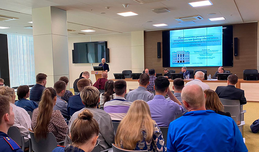 06 июня 2024 г. заведующий криминалистической лаборатории Санкт-Петербургского филиала Университета прокуратуры Российской Федерации А.В. Холопов и студенты юридического факультета Института приняли участие в научно-практическом межведомственном круглом столе «Профилактика религиозного экстремизма и сфера правоохранительной деятельности», проведенном отделом по связям с религиозными объединениями Администрации Губернатора Санкт-Петербурга. В работе мероприятия приняли участие представители Администрации Губернатора Санкт-Петербурга и Комитета по вопросам законности правопорядка и безопасности, Санкт-Петербургской духовной Академии, традиционных религиозных конфессий, Академии ФСИН России, Санкт-Петербургского Университета ФСИН России, Санкт-Петербургской академии Следственного комитета РФ, Ленинградского областного филиала Санкт-Петербургского университета МВД РФ, экспертного и научного сообщества, территориальных органов ФСИН России, МВД России, общественных организаций. Студенческий корпус Института представили студенты юридического факультета: Сомко Виктория, 4 курс; Слепнева София, 4 курс; Афончиков Сергей, 4 курс; Косцов Матвей, 2 курс; Попова Екатерина, 4 курс; Леонтьев Евгений, 3 курс. Участниками Круглого стола были рассмотрены следующие вопросы: теоретические аспекты профилактики религиозного экстремизма в сфере правоохранительной деятельности; вопросы предупреждения религиозного экстремизма в среде осужденных и постпенитенциарный период; профилактика религиозного экстремизма в молодежной среде. С докладом «Профилактика религиозного экстремизма как фактор обеспечения духовно-психологической безопасности общества» выступил заведующий криминалистической лабораторией Института А. В. Холопов. |