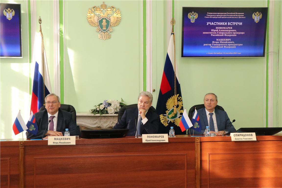 12–13 сентября 2024 года заместитель Генерального прокурора Российской Федерации Пономарев Ю.А. и ректор Университета прокуратуры Российской Федерации Мацкевич И.М. по поручению Генерального прокурора Российской Федерации Краснова И.В. посетили Санкт-Петербургский юридический институт (филиал) Университета прокуратуры Российской Федерации.
