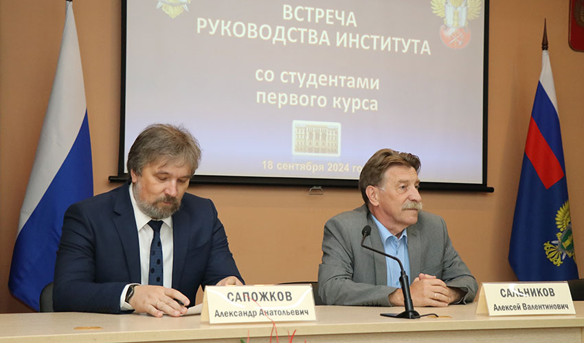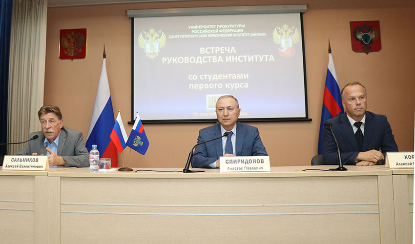 18 сентября 2024 г. состоялась встреча директора Института Спиридонова Анастаса Павловича со студентами 1 курса юридического факультета. Во встрече также приняли участие заместители директора Сальников Алексей Валентинович, Сапожков Александр Анатольевич и Короп Алексей Борисович. В ходе встречи Спиридонов А.П. рассказал об организации учебного процесса в Институте, требованиях, которые предъявляются к будущим прокурорам-студентам Университета и пожелал первокурсникам успехов в освоении образовательной программы. Напутственные слова прозвучали и от заместителей директора. В завершение встречи студенты задали руководству Института интересующие их вопросы.