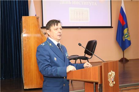 Об истории и становлении Института, его основателях и их роли в жизни учебного заведения выступил заведующий кафедрой государственно-правовых дисциплин, председатель историко-архивной комиссии Института Лавров В.В.
