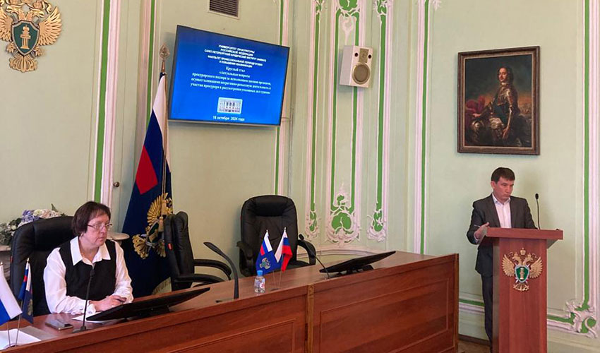 16 октября 2024 г. в Санкт-Петербургском филиале Университета прокуратуры Российской Федерации на факультете профессиональной переподготовки и повышения квалификации состоялся круглый стол «Актуальные вопросы прокурорского надзора за исполнением законов органами, осуществляющими оперативно-розыскную деятельность, и участия прокурора в уголовном судопроизводстве». В работе круглого стола приняли участие старший прокурор отдела по надзору за оперативно-розыскной и процессуальной деятельностью управления Генеральной прокуратуры Российской Федерации в Северо-Западном федеральном округе А.М. Бухальцов, прокурор третьего отдела (кассационного) (с дислокацией в Санкт-Петербурге) кассационно-надзорного управления по обеспечению участия прокуроров в апелляционных и кассационных судах общей юрисдикции Главного уголовно-судебного управления Генеральной прокуратуры Российской Федерации Е.Е. Евтушевский, прокурор отдела по надзору за производством дознания и оперативно-розыскной деятельностью управления по надзору за уголовно-процессуальной и оперативно-розыскной деятельностью прокуратуры Ленинградской области Н.С. Ефимов, судья Херсонского областного суда А.С. Суходолов, слушатели факультета профессиональной переподготовки и повышения квалификации - прокуроры городов, районов и приравненные к ним прокуроры специализированных прокуратур, а также профессорско-преподавательский Института. В ходе мероприятия были обсуждены актуальные вопросы прокурорского надзора за исполнением законов органами, осуществляющими оперативно-розыскную деятельность, пересмотра судебных решений в кассационных судах, участия прокурора в рассмотрении судами уголовных дел частного обвинения. В ходе дискуссионной части круглого стола участники обменялись мнениями по актуальным вопросам правоприменительной практики. |