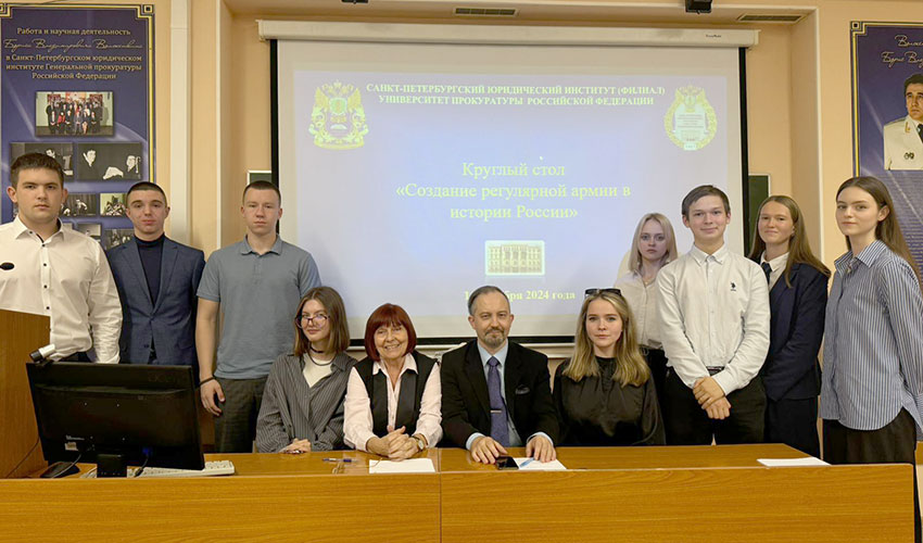 16 октября 2024 г. в Санкт-Петербургском филиале Университета прокуратуры Российской Федерации в соответствии с планом государственно-патриотического воспитания Института состоялся Круглый стол «Создание регулярной армии в истории России» для студентов 1 курса юридического факультета. Круглый стол организовали и провели заведующий кафедрой теории и истории государства и права Е.Е. Амплеева, доценты кафедры Н.М. Иванова и А.В. Ерёмин. В работе мероприятия приняли участие студенты 1 курса Е. Утин, П. Ефешина, П. Лысенкова, Ю. Гранкина, А. Антонов, К. Губина, В. Столбова, И. Подковаев, А. Бандуров. Участниками круглого стола были рассмотрены и обсуждены вопросы формирования регулярной армии при Петре I, изучены страницы истории вооруженных сил предшествующего времени. Присутствующие обменялись мнениями по вопросам политического и социального значения создания регулярной армии в истории России. |