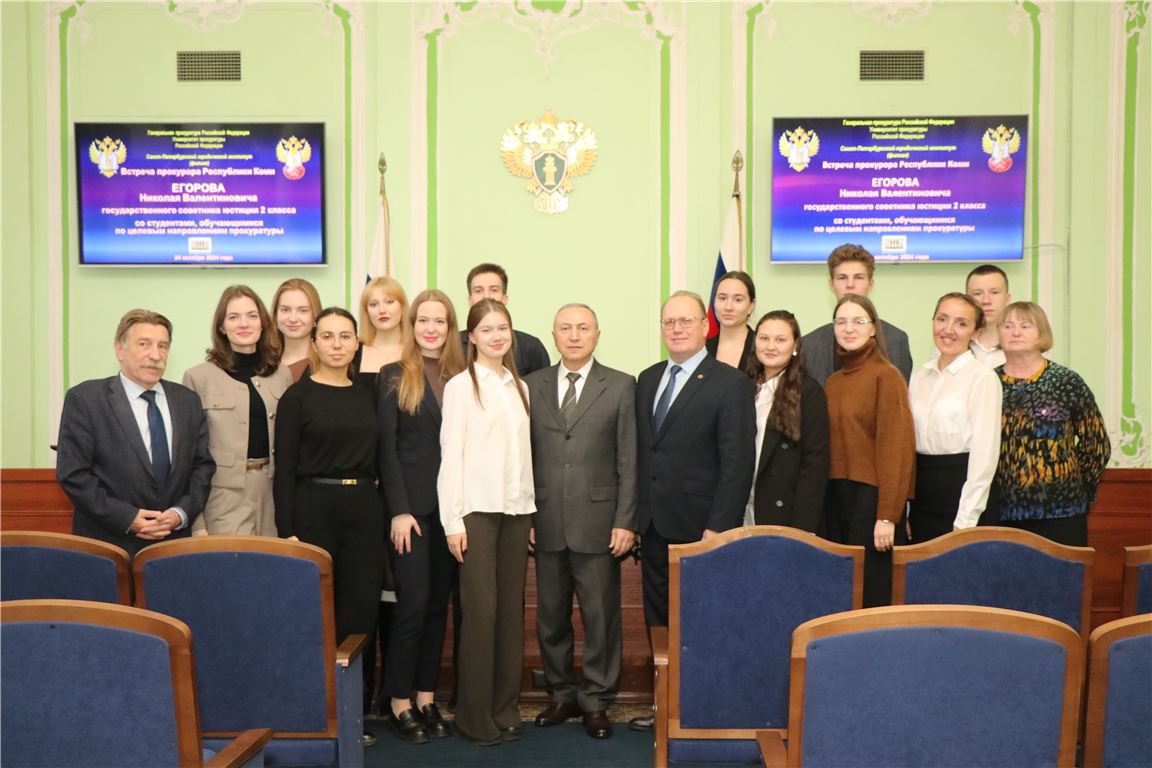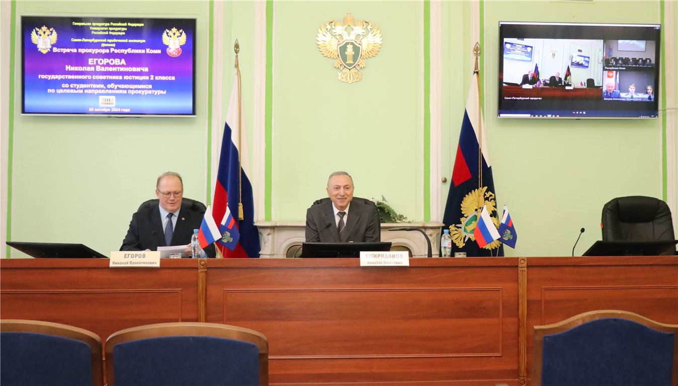 23 октября 2024 г. в Санкт-Петербургском филиале Университета прокуратуры Российской Федерации состоялась встреча прокурора Республики Коми государственного советника юстиции 2 класса Егорова Николая Валентиновича со студентами юридического факультета Института, проходящими обучение по целевым направлениям от прокуратуры Республики Коми.