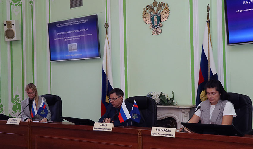 30 октября 2024 г. в Санкт-Петербургском филиале Университета прокуратуры Российской Федерации состоялся научно-практический семинар «Актуальные проблемы контрольно-надзорной деятельности в Российской Федерации». С приветственным словом выступил заместитель директора Института Сапожков А.А., отметил актуальность рассматриваемой темы научного мероприятия и ее значимость в механизме государственного управления. В работе научно-практического семинара приняли участие заместитель начальника отдела юридического обеспечения Управления Федеральной службы по надзору в сфере защиты прав потребителей и благополучия человека по городу Санкт-Петербургу Прокофьев Александр Александрович, заместитель начальника Управления надзорной деятельности и профилактических мероприятий – начальник отдела организации надзорных и профилактических мероприятий Главного управления МЧС России по г. Санкт-Петербургу Базаев Станислав Николаевич, прокурор отдела по надзору за соблюдением прав предпринимателей управления по надзору за исполнением федерального законодательства прокуратуры города Санкт-Петербурга Смирнова Татьяна Анатольевна, профессорско-преподавательский состав Института, слушатели факультета переподготовки и повышения квалификации, аспиранты и студенты. Предметом обсуждения в рамках работы семинара стали актуальные вопросы реформы контрольно-надзорной деятельности в Российской Федерации, оспаривания решений, действий (бездействия) контрольно-надзорных органов, практика применения «регуляторной гильотины», а также прокурорский надзор за законностью в деятельности контрольно-надзорных органов Российской Федерации. Предложенная тематика вызвала оживленную и плодотворную дискуссию. Благодарим всех за участие! |
