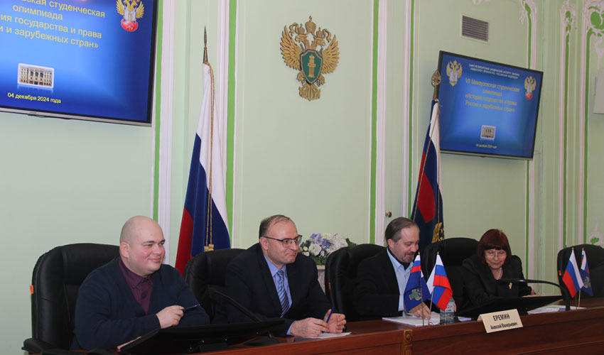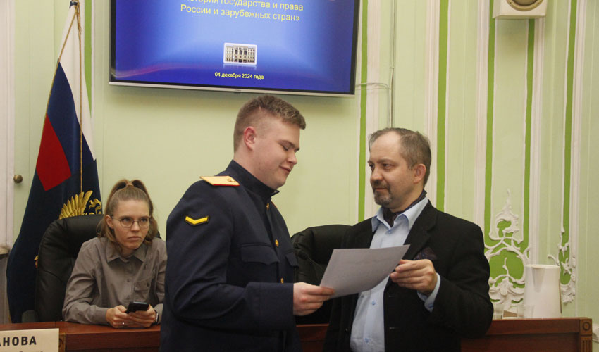 4 декабря 2024 г. в Санкт-Петербургском филиале Университета прокуратуры Российской Федерации состоялась VII Межвузовская студенческая Олимпиада «История государства и права России и зарубежных стран». В Олимпиаде приняли участие 15 команд из Санкт-Петербургской академии Следственного комитета Российской Федерации, Санкт-Петербургской юридической академии, Санкт-Петербургского Университета ФСИН России, Северо-Западного филиала Российского государственного университета правосудия, Института. В состав жюри вошли доценты кафедры теории и истории государства и права Института Еремин А.В. и Иванова Н.М., доцент Санкт-Петербургской академии Следственного комитета Российской Федерации Самарин В.А., доцент Санкт-Петербургского Университета ФСИН России Мурсалимов К.А. и старший преподаватель филиала РГУП Андрианова М.В. Олимпиада состояла из трёх туров: тест (командный тур), задания на соотношение (командный тур), устное рассуждение на предложенную тему (индивидуальный тур). По результатам 1 и 2 туров: 1 место заняла команда «Кшатрии» (Санкт-Петербургского филиала Университета прокуратуры Российской Федерации), 2 место – команда «Агентство по зарубежной истории» (Северо-Западного филиала Российского государственного университета правосудия), Победителем 3 тур – конкурса ораторского мастерства стал представитель Университета ФСИН России. |