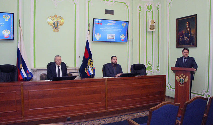 23 декабря 2024 года в Санкт-Петербургском филиале Университета прокуратуры Российской Федерации под председательством директора государственного советника юстиции 2 класса, д.ю.н. Спиридонова А.П. состоялось заседание Учёного совета. В ходе заседания заслушан отчет Плугаря Д.М. об итогах работы факультета подготовки научных кадров за 2023/2024 учебный год. Об итогах работы Института в 2024 году доложили заместители директора Сальников А.В., Короп А.Б. и Сапожков А.А., Корсунов А.Д. Отчет о работе Ученого совета Института в 2024 году и план работы Ученого совета Института на 2025 год представил учёный секретарь Кравченко Р.М. |