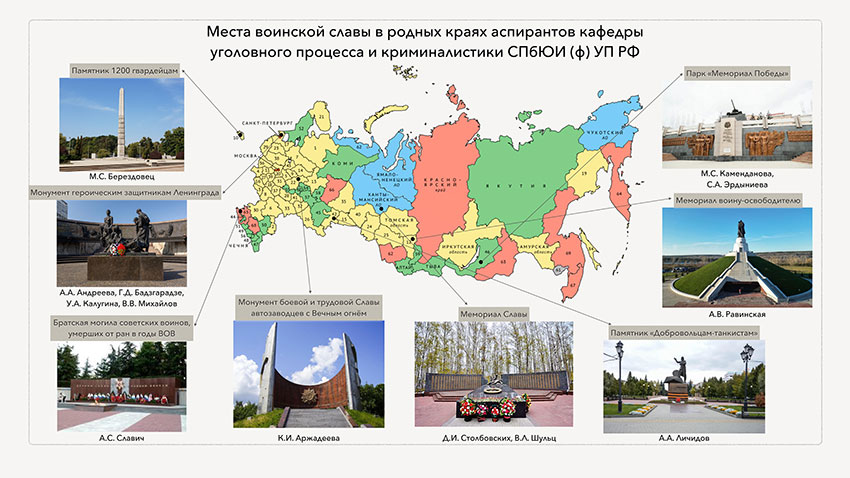 05 февраля 2025 года аспирантами кафедры уголовного процесса и криминалистики Санкт-Петербургского филиала Университета прокуратуры Российской Федерации во исполнение пункта 4 Плана работы Института по государственно-патриотическому воспитанию на 2025 год подготовлена стенная газета, посвященная местам воинской славы в их родных краях. С представленной стенгазетой желающие могут ознакомиться на кафедре.