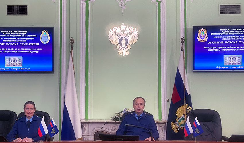12 февраля 2025 года в Санкт-Петербургского юридическом институте (филиале) Университета прокуратуры Российской Федерации состоялось открытие потока по программе повышения квалификации прокуроров городов, районов и приравненных к ним прокуроров специализированных прокуратур – всего 30 слушателей. Со вступительным словом выступил заместитель директора Института государственный советник юстиции 3 класса Короп А.Б.