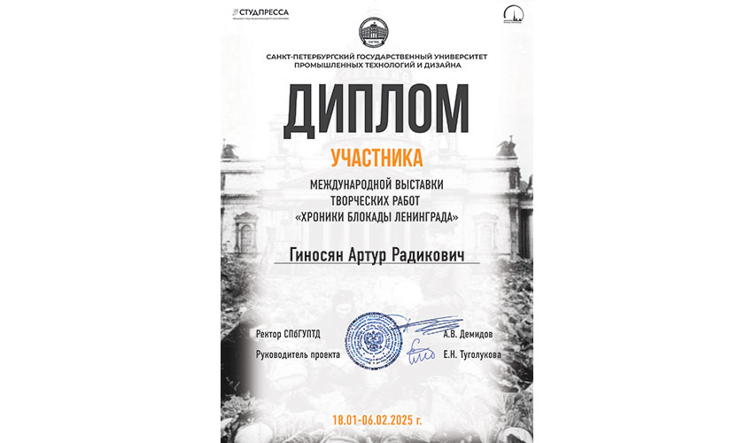 Участники Патриотического клуба Санкт-Петербургского филиала Университета прокуратуры Российской Федерации приняли участие в Интерактивной выставке «Хроники блокады Ленинграда». Главная идея проекта — воссоздать семейные архивы о блокаде Ленинграда и событиях Великой Отечественной войны, сохранив подлинную историю. События Великой Отечественной войны, рассказанные жителями и детьми блокадного Ленинграда, ветеранами студентам, оживают благодаря работе петербургских студентов и дизайнеров. Сочинения-эссе в память о блокаде Ленинграда были представлены на интерактивной выставке «Хроники Блокады Ленинграда». Экспозиция с применением дополненной реальности стала доступной для посетителей в главном корпусе Санкт-Петербургского государственного университета промышленных технологий и дизайна. |