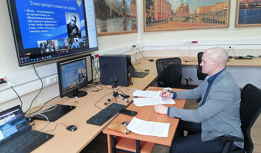 26 февраля 2025 г. преподаватели Санкт-Петербургского филиала Университета прокуратуры Российской Федерации приняли участие в работе круглого стола «Коммуникация в системе компетенций прокурорского работника», организованном Университетом прокуратуры Российской Федерации, в режиме видеоконференцсвязи. Участниками мероприятия рассмотрены и обсуждены вопросы формирования коммуникативных компетенций и навыков прокурорского работника, проблемы коммуникации при организации приема граждан, организации правового просвещения и другие вопросы. Заведующий кафедрой общегуманитарных и социально-экономических дисциплин Института Шурпаев Ш.М. выступил с докладом «Вопросы формировании навыков письменной коммуникации в структуре компетенции прокурорского работника». Также с докладом «Формирование коммуникативной компетентности как профессионально значимого качества прокурорского работника» выступил доцент кафедры гражданско-правовых дисциплин Порохов М.Ю. В дискуссии приняли участие преподаватели Института: декан факультета профессиональной переподготовки и повышения квалификации Головко И.И., декан факультета подготовки научных кадров Плугарь Д.М., доцент кафедры уголовного процесса и криминалистики Григорьева М.А., научный сотрудник криминалистической лаборатории Непеин Г.Г., доцент кафедры прокурорского надзора и участия прокурора в рассмотрении уголовных, гражданских и арбитражных дел Омельянович В.В. |