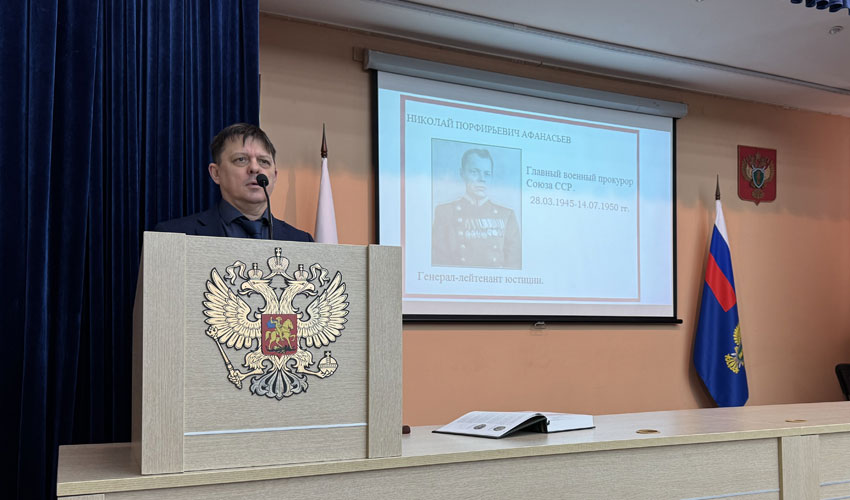 26 февраля 2025 г. в рамках исполнения плана работы Института по государственно-патриотическому воспитанию заведующим кафедрой государственно-правовых дисциплин Санкт-Петербургского филиала Университета прокуратуры Российской Федерации В.В. Лавровым проведена тематическая лекция, посвященная деятельности Н.П. Афанасьева, Главного военного прокурора Советского Союза, заместителя Генерального прокурора СССР, генерал-лейтенанта юстиции. Это был талантливый и ответственный руководитель, много сделавший для укрепления в армии законности и порядка. Служба Николая Порфирьевича Афанасьева в органах военной юстиции началась с 1924, когда он стал военным следователем военного трибунала Первой Казанской стрелковой дивизии, впоследствии в 1939 он был назначен на должность заместителя Главного военного прокурора. С 1942 по март 1945 являлся Главным военным прокурором железнодорожного транспорта СССР. В дальнейшем, как один из опытнейших и высококвалифицированных работников военной юстиции был назначен на должность заместителя Генерального прокурора СССР. Представленная информация вызвала живой отклик у обучающихся. Выражаем благодарность всем участникам мероприятия за проявленный интерес! |