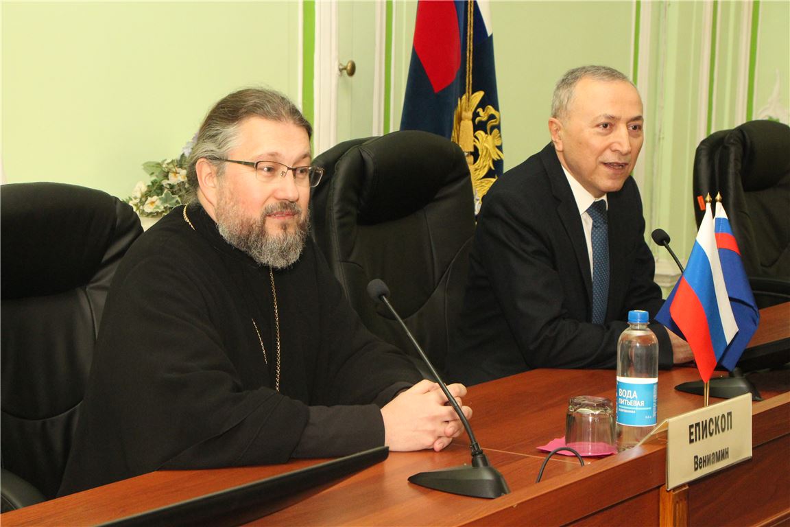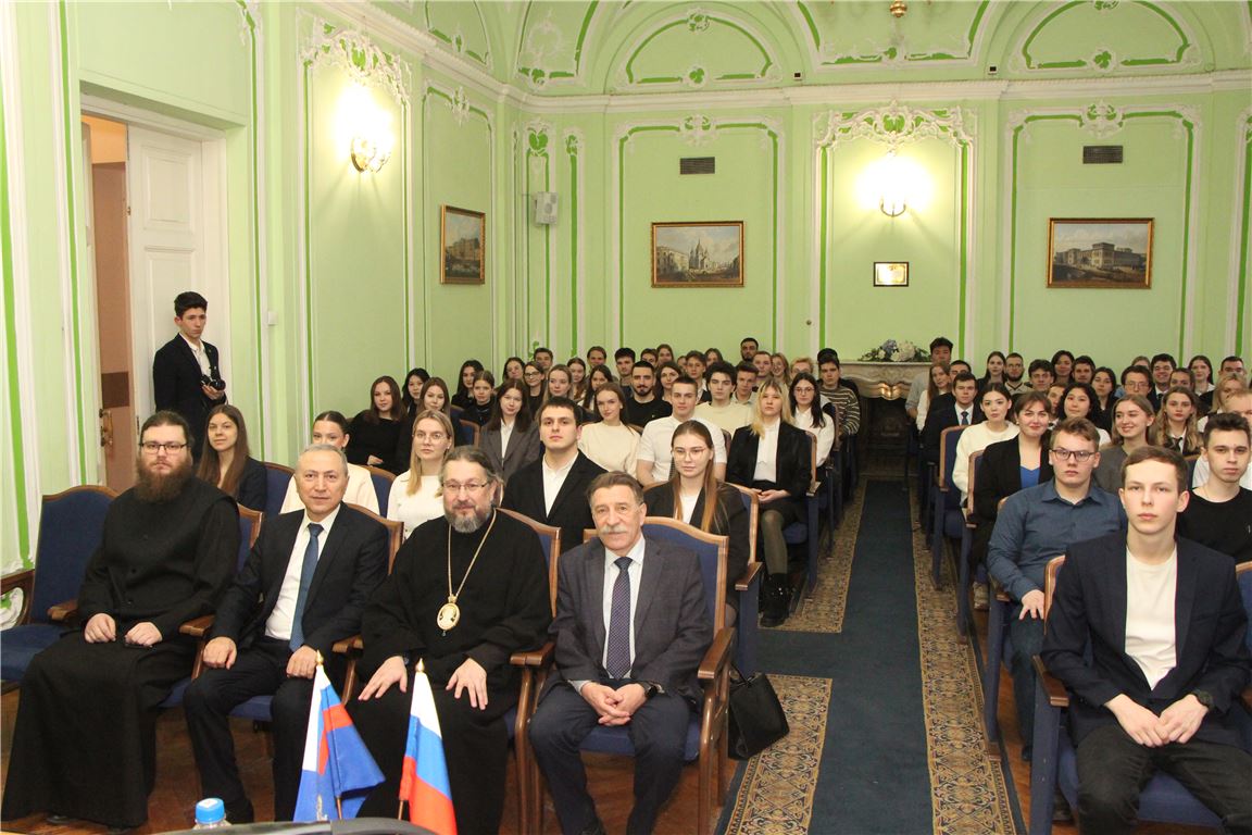 Открыл встречу директор Института А.П. Спиридонов, который поблагодарил Епископа Вениамина за важную встречу и отметил значимость духовно-нравственного воспитания молодого поколения.