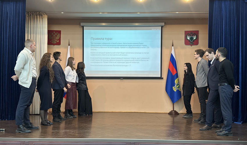 26 февраля 2025 г. в Санкт-Петербургском филиале Университета прокуратуры Российской Федерации состоялась Внутривузовская студенческая олимпиада по уголовному праву среди студентов 3 курса юридического факультета. В мероприятии приняли участие 9 команд студентов 3 курса Института. В состав жюри вошли преподаватели кафедры уголовного права, криминологии и уголовно-исполнительного права Д.А. Безбородов, Л.В. Готчина, А.В. Зарубин, Р.В. Кравченко и аспиранты кафедры Е.А. Зуева и К.О. Русинова. Олимпиада состояла из конкурсов, рассчитанных на проверку теоретических и практических знаний по Общей и Особенной части уголовного права. Во время выполнения первого конкурсного задания команды ответили на тестовые задания. При выполнении второго задания участникам команд необходимо было дать уголовно-правовую оценку ситуации, продемонстрированной в эпизоде художественного фильма, наглядно и динамично показывающем совершение преступлений. В третьем туре участники Олимпиады соревновались в конкурсе «Крокодил». Капитаны команд соревновались в способности быстро и точно отвечать на наиболее сложные вопросы уголовного права. Участники продемонстрировали обширные познания в области уголовного права и прекрасно справились со многими заданиями. В результате упорной борьбы: I место заняла команда «Волк Иванович», в составе Вдовиченко И.А., Войлокова В.А. Григорьевой А.А., Кузнецовой Е.М., Плешанова Д.И.; II место заняла команда «Ума палата», в составе Андреева Д.В., Ивановой А.Р., Зимина И.А., Ильиной В.А., Уваровой Д.Р.; III место заняла команда «Бестолковые» , в составе Бороздиной М.О., Балцуна А.О., Веселовой Д.Д., Кургановой Е.В., Щегловой А.А. Победившие команды были награждены дипломами. Участникам других команд были вручены сертификаты участников. Благодарим всех за участие! |