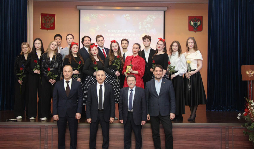 7 марта 2025 года в актовом зале Санкт-Петербургского филиала Университета прокуратуры Российской Федерации прошло яркое мероприятие, посвященное Международному женскому дню. Открылось мероприятие теплыми поздравлениями от Анастаса Павловича Спиридонова — директора Института, государственного советника юстиции 2 класса. Он сердечно поздравил гостей, сотрудников и студентов с весенним праздником, пожелав всем женщинам и девушкам крепкого здоровья, счастья, любви, а также сохранения обаяния, доброты и энергии. В рамках торжества были оглашены приказы директора, в которых отмечались сотрудники и студенты за их активное участие в учебной и общественной жизни института. Это стало приятным признанием заслуг тех, кто вносит значительный вклад в развитие учебного заведения. Завершилось мероприятие яркими концертными номерами, подготовленными студентами юридического факультета. Их выступления, полные творчества и задора, подарили всем присутствующим заряд позитива и хорошего настроения. |