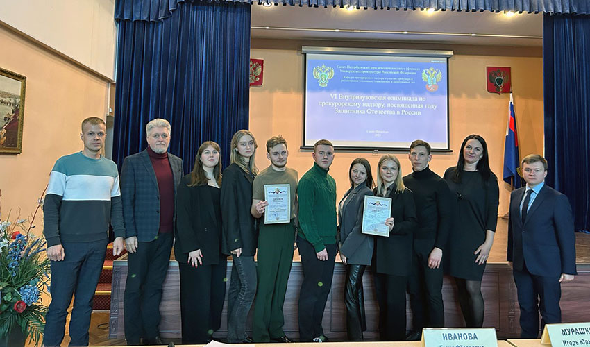 17 марта 2025 г. в Санкт-Петербургском филиале Университета прокуратуры Российской Федерации состоялась VI Внутривузовская студенческая олимпиада по прокурорскому надзору, посвященная году Защитника Отечества в России, в которой приняли участие 5 команд 4 курса юридического факультета Института.