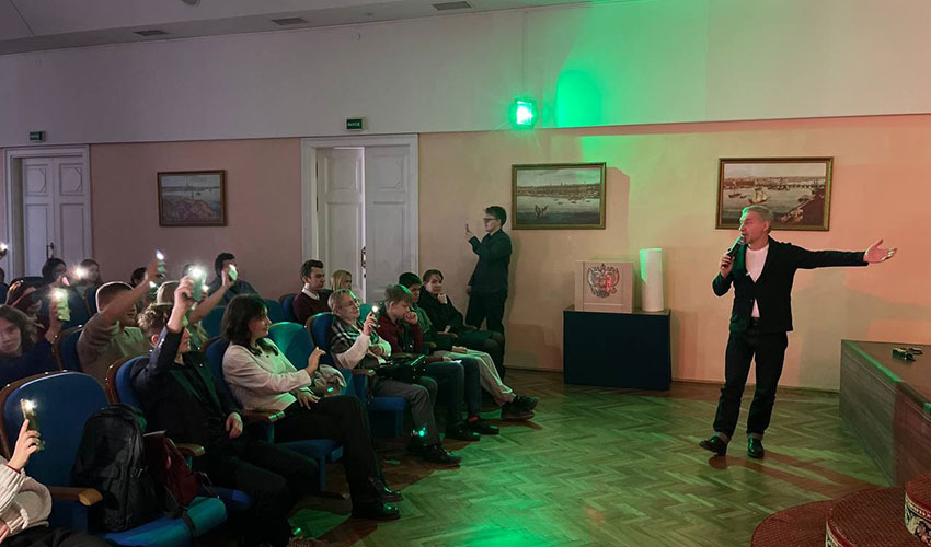 22 марта 2025 г. в Санкт-Петербургском филиале Университета прокуратуры Российской Федерации кафедрой общегуманитарных и социально-экономических дисциплин совместно с Патриотическим клубом Института организована постановка спектакля для воспитанников Центра содействия семейному воспитанию № 15 и студентов юридического факультета с участием актера театра и кино Н. Перминовым. Постановка повествует о сложностях, с которыми сталкивается человек на жизненном пути и учит нас не отчаиваться, идти дальше к своей мечте, преодолевая все преграды. Герой спектакля проживает на сцене свою жизнь от ребенка до взрослого состоявшегося человека. И единственное, что он хочет сказать себе – ребенку, чтобы он не переживал, что все будет хорошо! В постановке приняли участие в качестве актеров воспитанники Центра содействия семейному воспитанию № 15 и студенты 1 курса юридического факультета Гудков Давид и Долина Дарья, а также актер театра и кино Николай Перминов. |