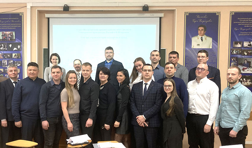26 марта 2025 г. в Санкт-Петербургском филиале Университета прокуратуры Российской Федерации на факультете профессиональной переподготовки и повышения квалификации в рамках государственно-патриотического воспитания слушателей состоялась викторина «Подвиг твой бессмертен, советский Солдат…», посвященная 80-летию Победы советского народа в Великой Отечественной войне (1941-1945 гг.). Викторина организована и проведена заведующим кафедрой теории и истории государства и права Института кафедры Амплеевой Е.Е. и доцентом кафедры Ерёминым А.В., при участии студентов 4 курса юридического факультета Гуревича Д.А. и Аверьяновой В.С. В рамках Викторины участники вспомнили великие битвы и даты Великой Отечественной войны; площади, улицы и мемориалы Санкт-Петербурга и Ленобласти, посвященные героям войны; модели военной техники и произведения искусства военного периода. В викторине приняли участие 4 команды слушателей: