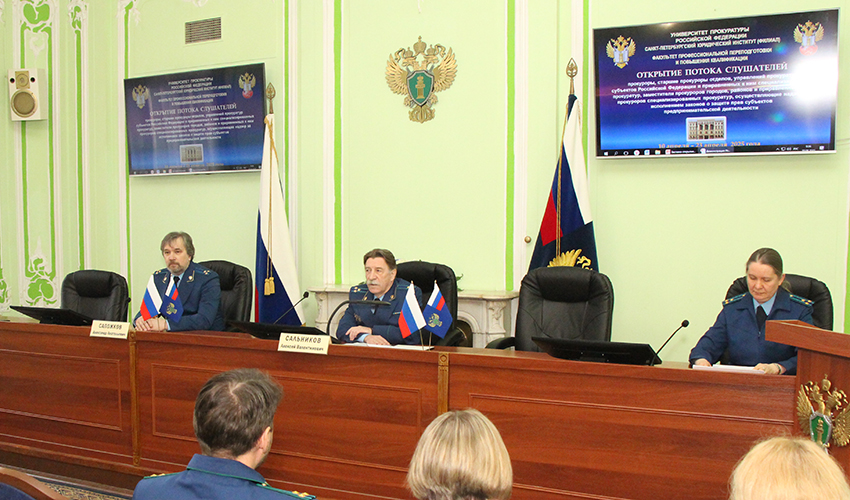 10 апреля 2025 года в Санкт-Петербургском юридическом институте (филиале) Университета прокуратуры Российской Федерации началось обучение потока старших прокуроров, прокуроров отделов, управлений прокуратур субъектов Российской Федерации и приравненных к ним специализированных прокурату, заместителей прокуроров городов и районов и приравненных к ним прокуроров специализированных прокуратур, осуществляющих надзор за исполнением законов о защите прав предпринимателей. К обучению приступили 30 слушателей. И.о. директора Института старший советник юстиции Сальников А.В. выступил с приветственной речью, довел до обучающихся основные требования, предъявляемые Генеральной прокуратурой Российской Федерации, поставил задачи строгого соблюдения правил внутреннего распорядка обучающихся. Заместитель директора Института старший советник юстиции Сапожков А.А. уделил внимание также актуальности тематики программы повышения квалификации. В открытии потока приняли участие декан юридического факультета Севастьяник И.К., декан факультета подготовки научных кадров Плугарь Д.М., которые рассказали о работе факультетов; заведующий кафедрой прокурорского надзора и участия прокурора в рассмотрении уголовных, гражданских и арбитражных дел Коршунова О.Н. и куратор учебной группы старший преподаватель этой же кафедры Сергеева А.Ю. Декан факультета профессиональной переподготовки и повышения квалификации Головко И.И. рассказала об особенностях учебного процесса, формах промежуточного и итогового контроля.