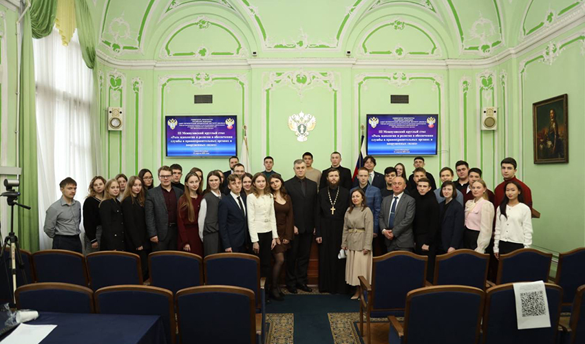 11 апреля 2025 г. в целях реализации государственно-патриотического и духовно-нравственного воспитания молодёжи, а также повышения интереса студентов, курсантов и слушателей к актуальным проблемам идеологического и религиозного обеспечения службы в правоохранительных органах и вооруженных силах в Санкт-Петербургском филиале Университета прокуратуры Российской Федерации состоялся III Межвузовский студенческий круглый стол «Роль идеологии и религии в обеспечении службы в правоохранительных органах и вооруженных силах». жных дел, кафедра государственно-правовых дисциплин, студенческий научный кружок «Правоохранительные органы» и Патриотический клуб Института. В мероприятии в очной и дистанционной форме приняли участие преподаватели, студенты и курсанты Военного института Министерства обороны Российской Федерации, Саратовской государственной юридической академии, Крымского филиала Российского государственного университета правосудия им. В.М. Лебедева, Санкт-Петербургского ордена Жукова института войск национальной гвардии Российской Федерации, студенты и слушатели факультета профессиональной переподготовки и повышения квалификации Института, а также представитель Центра защиты материнства Отдела по церковной благотворительности и социальному служению Санкт-Петербургской епархии. В ходе работы круглого стола были обсуждены вопросы идеологического обеспечения службы и межконфессиональных взаимоотношений, роль религиозных организаций в осуществлении мероприятий по социальной защите военнослужащих, членов их семей и ветеранов войн, этика и нравственные принципы службы в правоохранительных органах и вооруженных силах, а также правовые аспекты пребывания священнослужителей в войсках. |