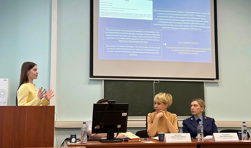 17 апреля 2025 г. студенты 4 курса юридического факультета Санкт-Петербургского филиала Университета прокуратуры Российской Федерации Назаренко И. и Абибулаева К. приняли очное участие в VIII Всероссийской межвузовской студенческой конференции «Законность и правопорядок в современных условиях: вызовы XXI века», проводимой Университетом. Назаренко И. выступила на секции публичного права с докладом «Фальсификация доказательств в арбитражном процессе: вопросы теории и практики». Абибулаева К. выступила на секции актуальных проблем прокурорской деятельности с докладом «Прокурорский надзор как средство обеспечения социальных прав детей участников специальной военной операции». В состав компетентного жюри вошли преподаватели Университета прокуратуры Российской Федерации и представители органов прокуратуры. Члены жюри отметили актуальность рассматриваемых тем, приведенной практики и оценили предложенные пути решения теоретических и практических проблем. Благодарим студентов за участие и желаем успехов в научной деятельности! |
