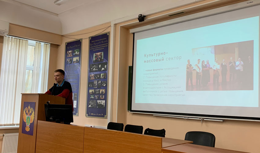 30 апреля 2025 г. в Санкт-Петербургском филиале Университета прокуратуры Российской Федерации состоялась ежегодная Отчетная конференция Студенческого совета о проделанной работе в 2024-2025 учебном году, а также были проведены выборы председателя Студенческого совета Института и выборы руководителей секторов. По результатам процедуры голосования председателем Студенческого совета избран Лавров Макар; председателем Культурно-массового сектора — Романова Полина; председателем сектора по Внешним связям — Мурзина Валерия; председателем Спортивного сектора — Куплина Мария; председателем Медиасектора — Иванова Ксения; председателем сектора по координации Клубной деятельности — Чевардова Варвара; делегатом в Студенческий совет Санкт-Петербурга — Гиносян Артур. Поздравляем и желаем новому руководящему составу Студенческого совета Института продуктивной и успешной работы! |